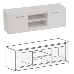 ТВ-тумба с закрытыми отделениями и открытыми полками.