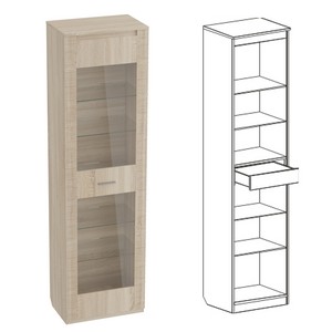 Витрина с двумя отделениями со стеклянными полками и выдвижным ящиком.