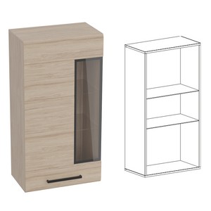 Шкаф-витрина высотой 1960 состоит из двух отделений с полками.