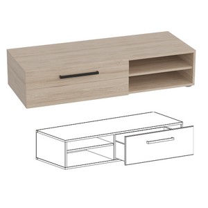 ТВ-тумба 1220 низкая с открытыми нишами и выдвижным ящиком.