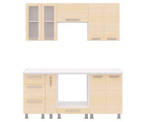 Модульная кухня Дельта-12 выполнена в цвете дуб молочный.