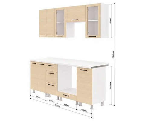 Высота верхних шкафов - 72 см.