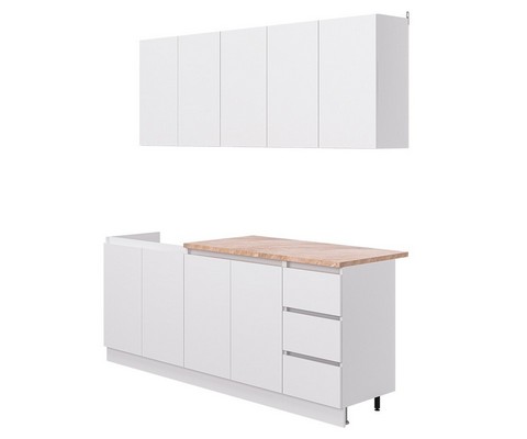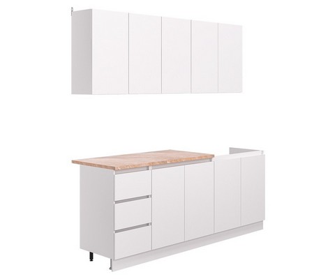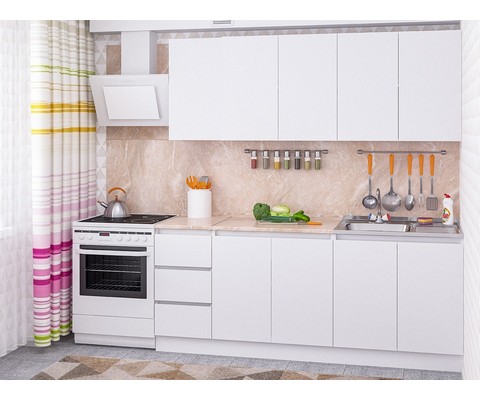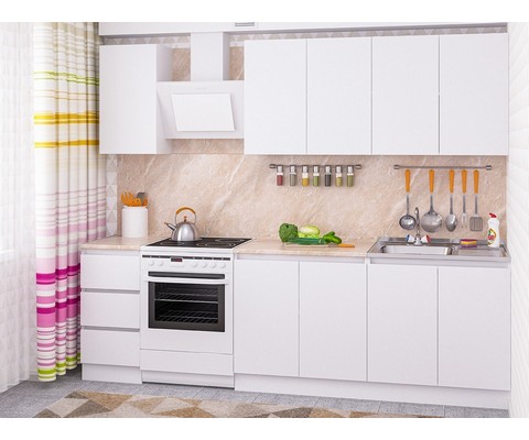 Модульная кухня Дельта-2.0 со столешницей выполнена в белом цвете.