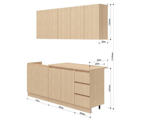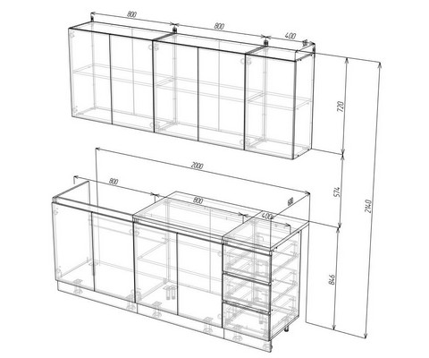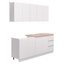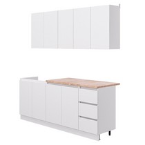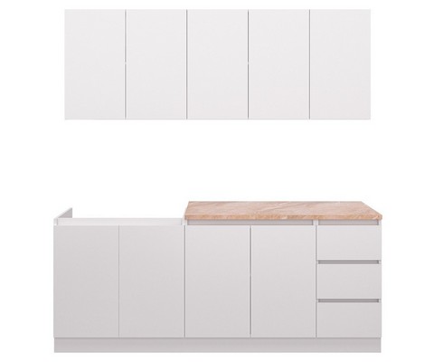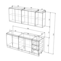 В комплекте 3 верхних шкафа 80 см, 80 см и 40 см, 3 нижних шкафа 80 см, 80 см, 40 см.