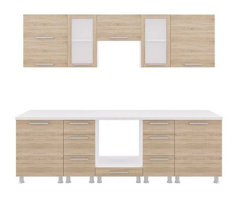 Модульная кухня Дельта-6 260 см выполнена в цвете дуб сонома.
