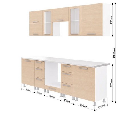 Высота верхних шкафов - 72 см.