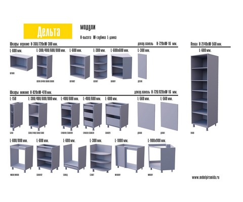Столешница, фартук, декоративная панель и сушилка для посуды в комплект не входят.