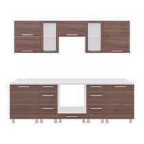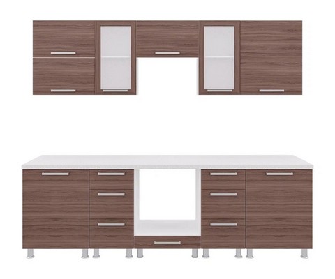 Модульная кухня Дельта-6 260 см выполнена в цвете ясень шимо темный.