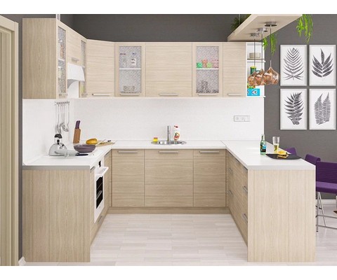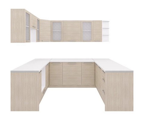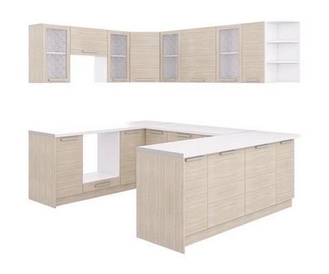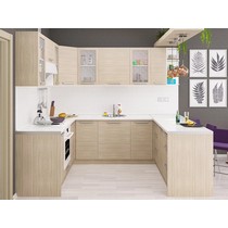 Модульная кухня Дельта-7 выполнена в цвете ясень шимо светлый.