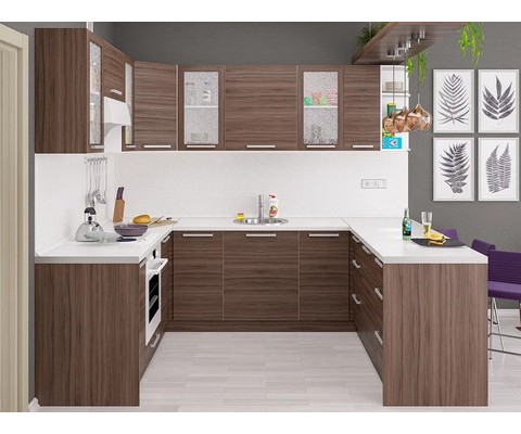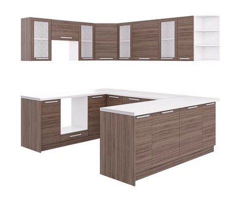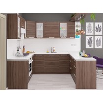 Модульная кухня Дельта-7 выполнена в цвете ясень шимо тёмный.