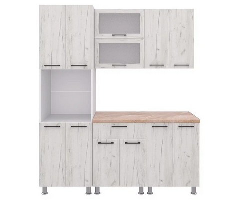 Модульная кухня Дельта-9 выполнена в цвете дуб крафт светлый.