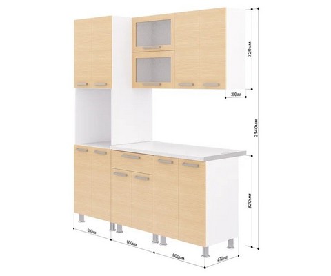 Комплектация: шкаф-пенал, 2 верхних шкафа по 60 см, 2 нижних модуля по 60 см).
