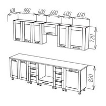Модульная кухня Монако-10 дуб эндгрейн включает: навесные шкафы 80 см - 1 шт, 40 см - 2 шт, 60 см - 1 шт, шкаф горизонтальный над вытяжкой 60 см, стол рабочий 80 см, стол под мойку 60 см, стол с 3-мя выдвижными ящиками 40 см - 2 шт, стол под духовой шкаф 60 см - 1 шт.