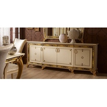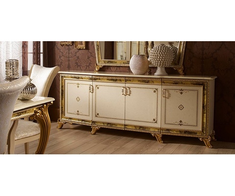 Мебель имеет трехслойное лаковое покрытие, изделия выполнены с применением трехцветной шелкографии. Объёмный декор – мебельный пенополиуретан. Кромка и стяжки - Германия. Петли, ручки - Италия. Боковины изделий – без лака.