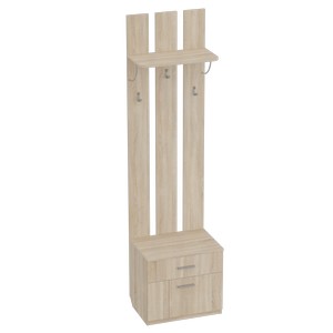 Вешалка с крючками, верхней полкой для головных уборов и тумбой внизу.