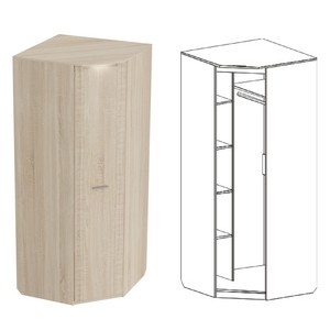 Угловой шкаф состоит из отделения с полками и штангой.
