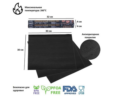 Набор антипригарных ковриков для гриля 3 шт 30х30 см BQ01 выдеживает максимальную температуру 260 градусов.