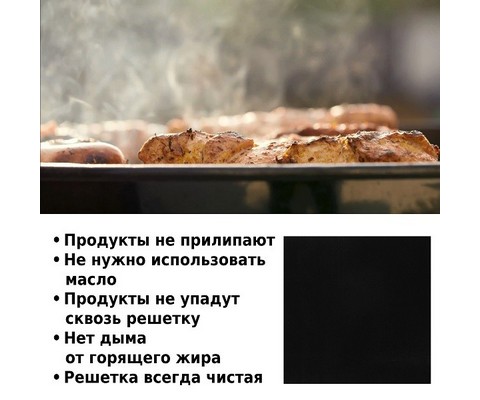 Антипригарный коврик для гриля-барбекю используется для приготовления мяса, овощей, креветок и других блюд.