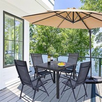 Комплектация набора дачной мебели Бергион - стол BMK-b-Stul-mnogopozicionnyj-51x66x107-sm-1180081, 4 кресла BELT-GS022, зонт RDM-zont-sadovit-300-banan (утяжелитель для зонта в комплект не входит и приобретается отдельно).