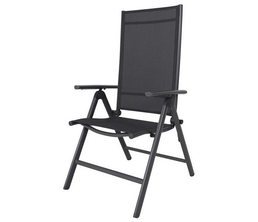Многопозиционный стул на металлическом каркасе с текстиленом.