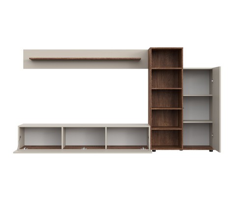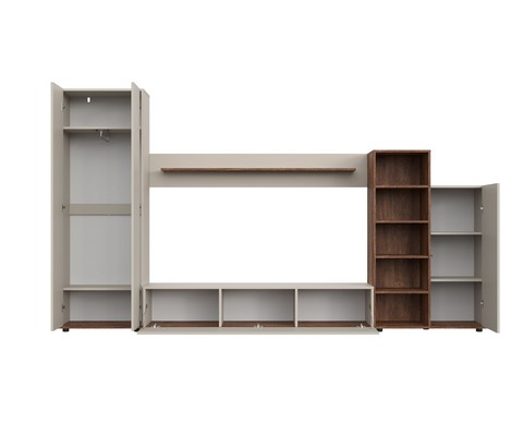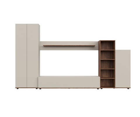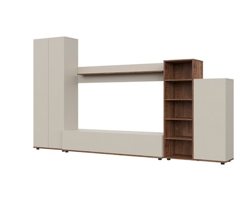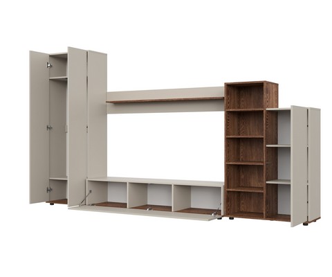 Набор для гостиной Amazon гармонично сочетает современные технологии открывания, эргономичную организацию и нейтральную эстетику.