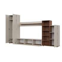 Современный мебельный гарнитур, создающий элегантную и функциональную зону хранения в гостиной.