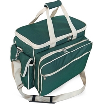 Количество предметов в сумке - 34 (ножи, вилки, ложки, тарелки, стаканчики, кружки, салфетки, солонка, перечница, штопор, нож, разделочная доска, ёмкость для масла).