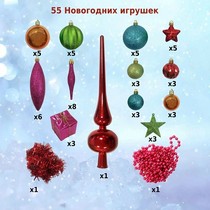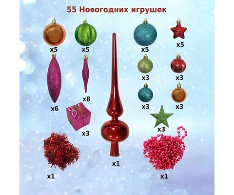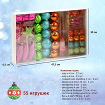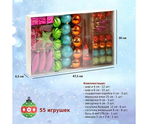 Набор ёлочных шаров с верхушкой пластик микс 55 шт в упаковке