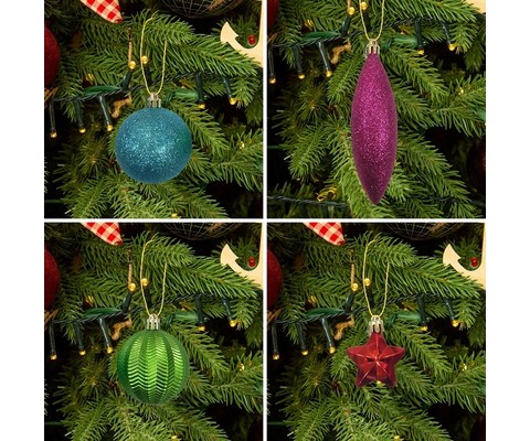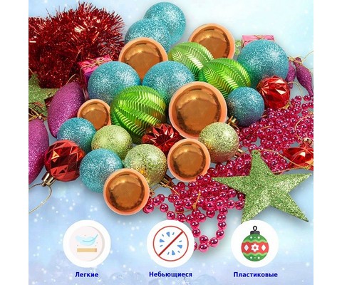 Набор ёлочных шаров с верхушкой пластик микс 55 шт в упаковке - большой разноцветный набор для украшения новогодней елки.