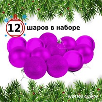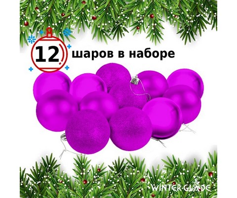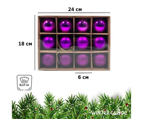 Набор ёлочных шаров Winter Glade пластик 6 см 12 шт фиолетовый микс для украшения новогодней елки.