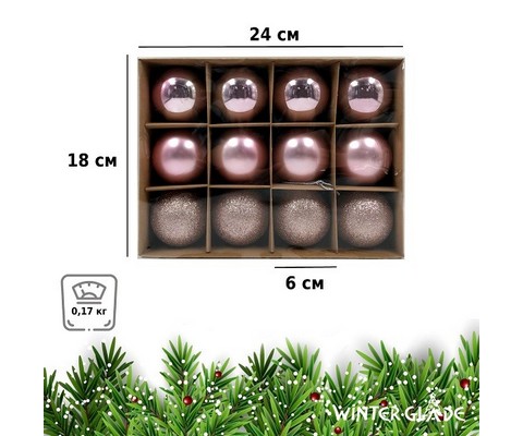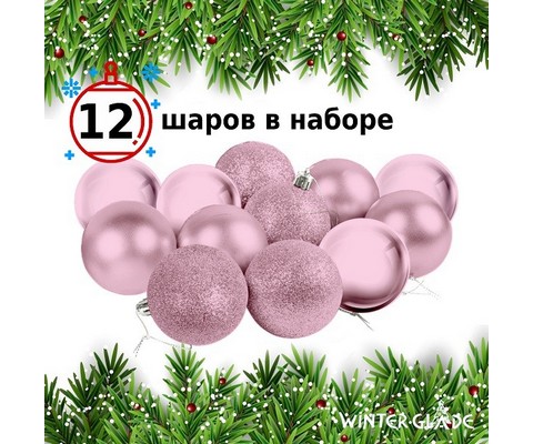Набор ёлочных шаров Winter Glade пластик 6 см 12 шт розовый микс для украшения новогодней елки.