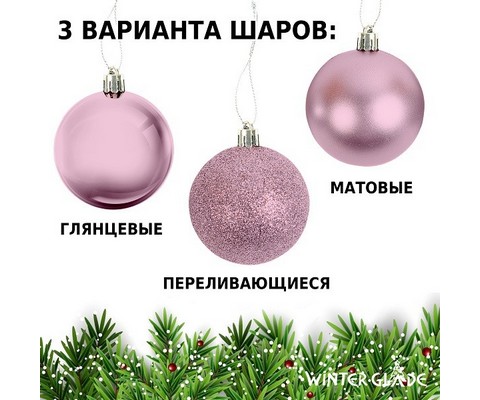 Набор ёлочных шаров Winter Glade пластик 6 см 12 шт розовый микс