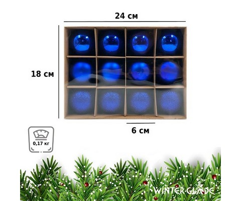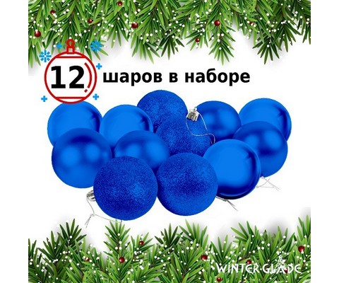 Набор ёлочных шаров Winter Glade пластик 6 см 12 шт синий микс