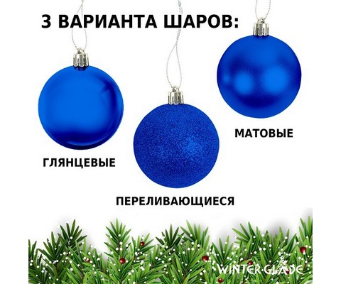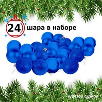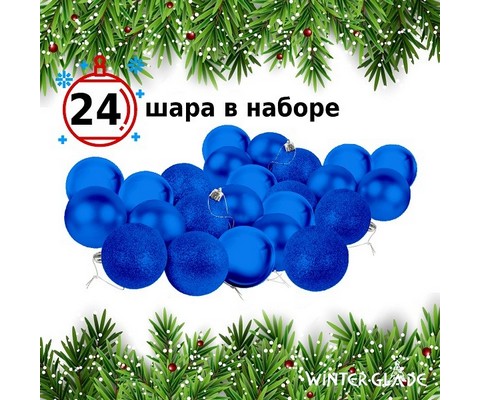 Набор ёлочных шаров Winter Glade пластик 6 см 24 шт синий микс