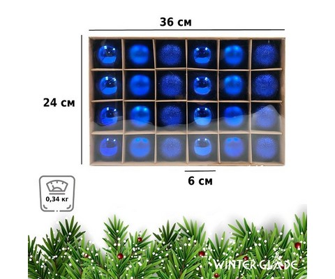 Набор ёлочных шаров Winter Glade пластик 6 см 24 шт синий микс для украшения новогодней елки.