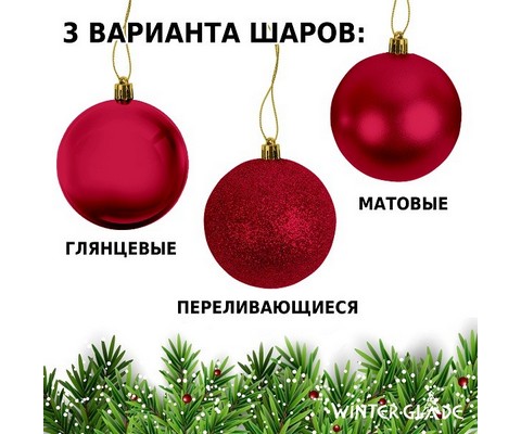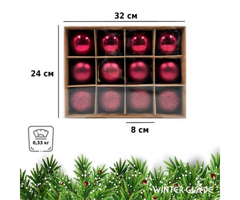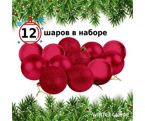 Набор ёлочных шаров Winter Glade пластик 8 см 12 шт красный микс