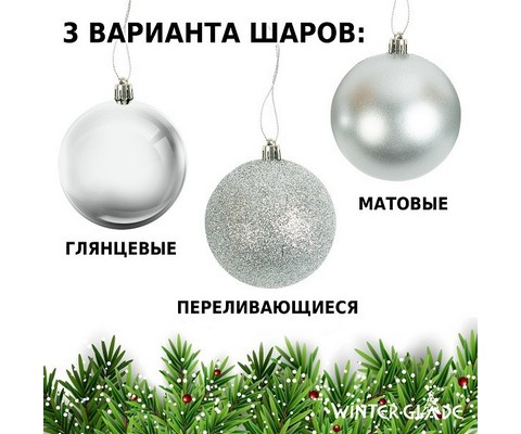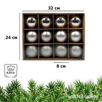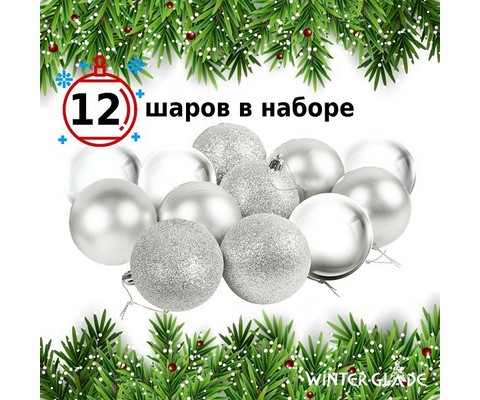 Набор ёлочных шаров Winter Glade пластик 8 см 12 шт серебряный микс
