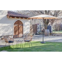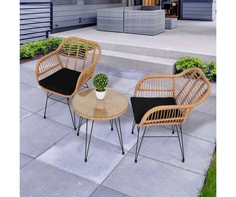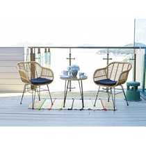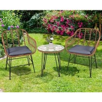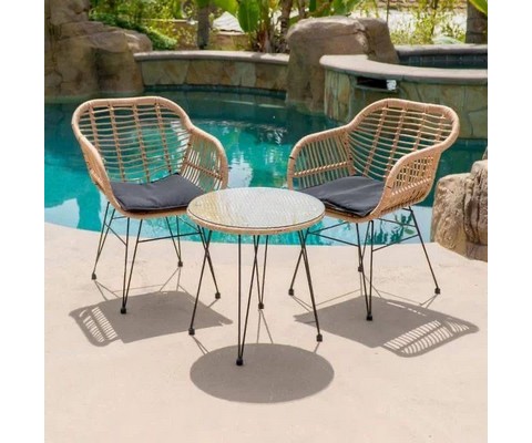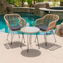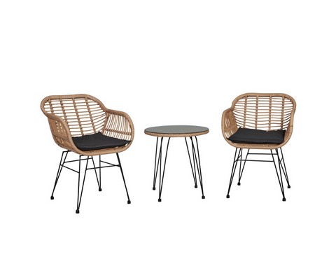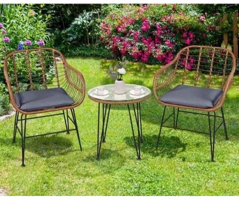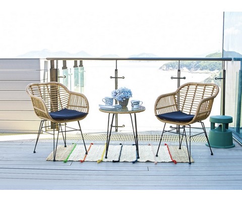 Материал: сталь (каркас), полиэстр (чехол мягкого элемента), искусственный ротанг, стекло (поверхность).