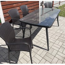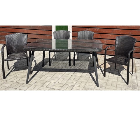 Материалы: ротанг искусственный (каркас, поверхность), стекло (поверхность стола).