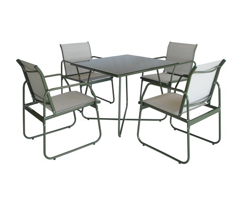 Набор мебели Андрия бежевый (стол + 4 кресла) на стальном каркасе выдерживает до 90 кг нагрузки.