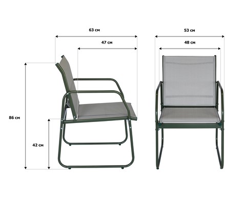 Материал: сталь (каркас) металл, текстилен (покрытие) водоотталкивающая ткань (чехол мягкого элемента).
