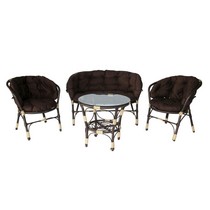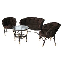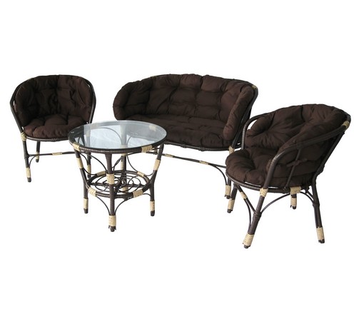 Набор мебели Багамы Лайт Х коричневый (диван + 2 кресла + подушки + стол со стеклом) искусственный ротанг