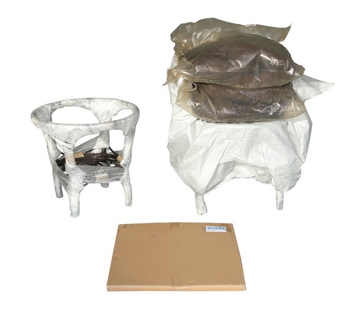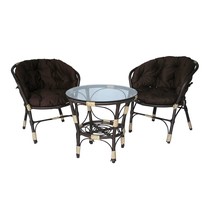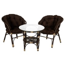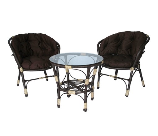 Комплектация: кресло - 2 шт + подушки, стол со стеклом.