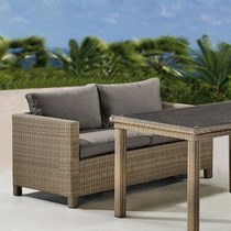 Материалы: сталь, искусственный ротанг, ударопрочное закалённое стекло, мебельная ткань с мягким наполнителем.