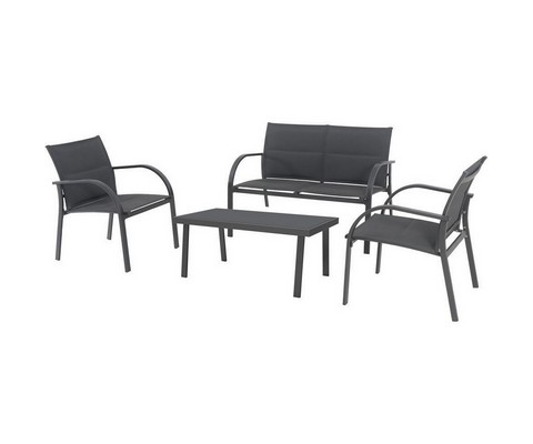 Дополнительное описание:Набор мебели для отдыха TORREON состоит из четырех предметов: прямоугольного кофейного столика, дивана и двух кресел. Садовый гарнитур с лаконичным дизайном соответствует современным стилям минимализм, хай-тек, урбанизм, подходит для создания скандинавского уюта.