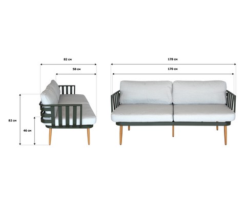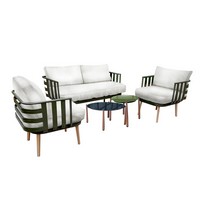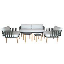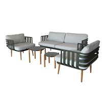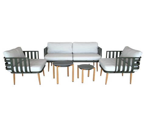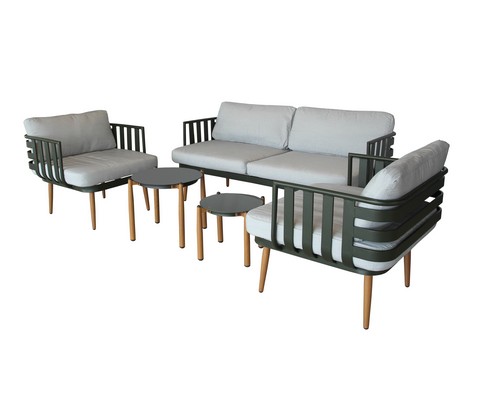 Набор мебели Эшланд серый, салатовый, бежевый (2 стола + 2 кресла + диван, подушки бежевые)