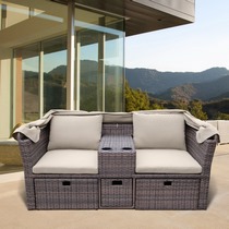 Комплект оснащён столиком с подстаканниками и ящиком для хранения.