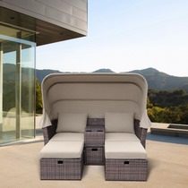 Съёмные чехлы подушек и тент из материала с водоотталкивающей пропиткой.