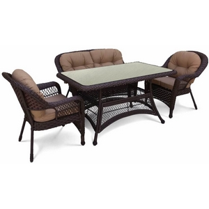 Комплектация: диван с подушками, кресло с подушками (2 шт.), обеденный стол.