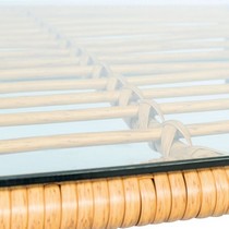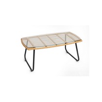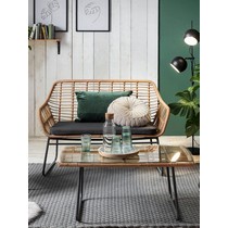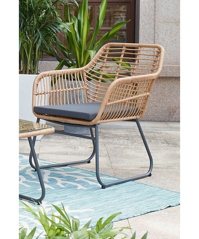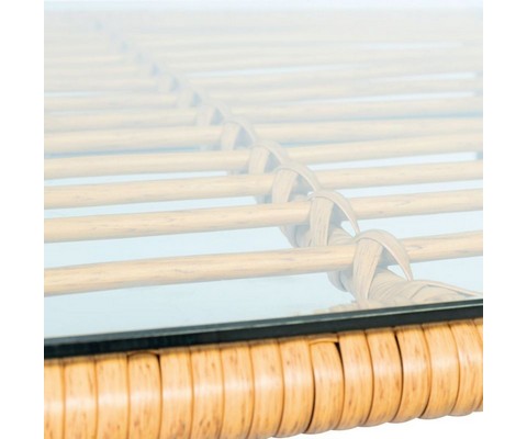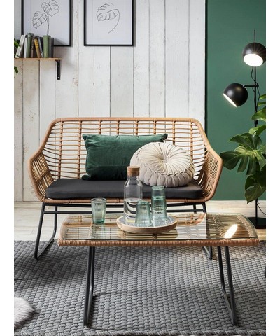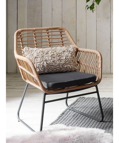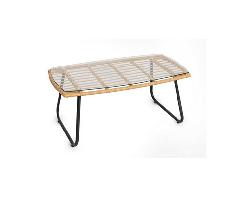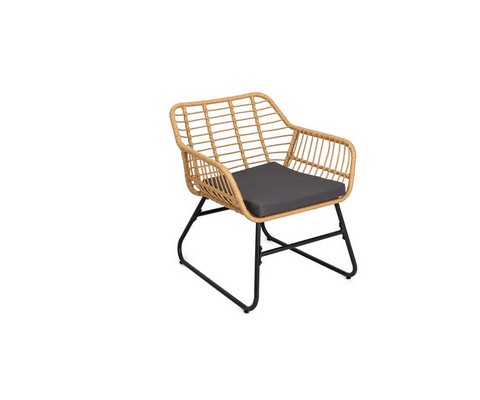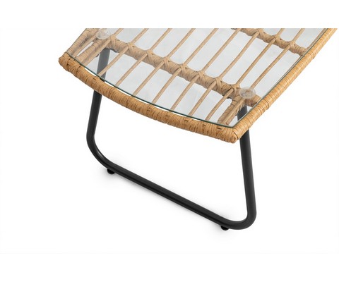 Материал: сталь (каркас), водоотталкивающая ткань (чехол мягкого элемента), искусственный ротанг, сталь (поверхность).